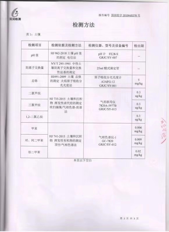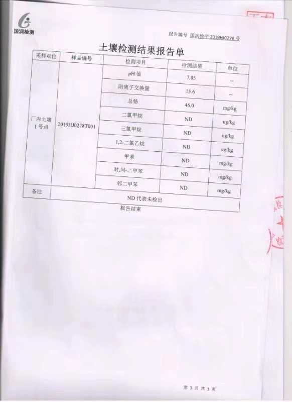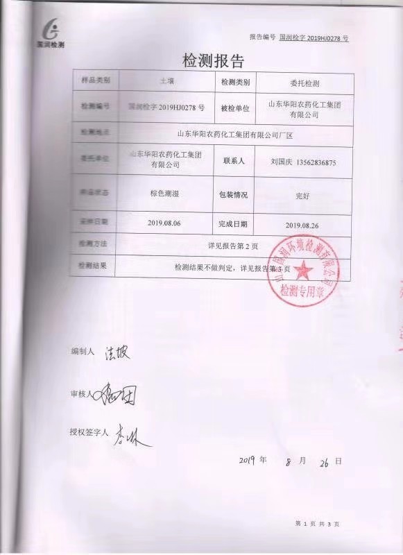 山東華陽農(nóng)藥化工集團有限公司土壤環(huán)境檢測報告
